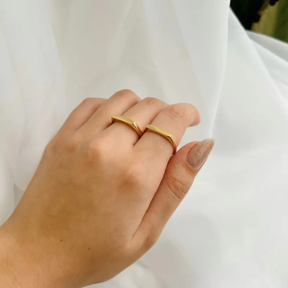 Anel chapa fino. banhado a ouro 18k.