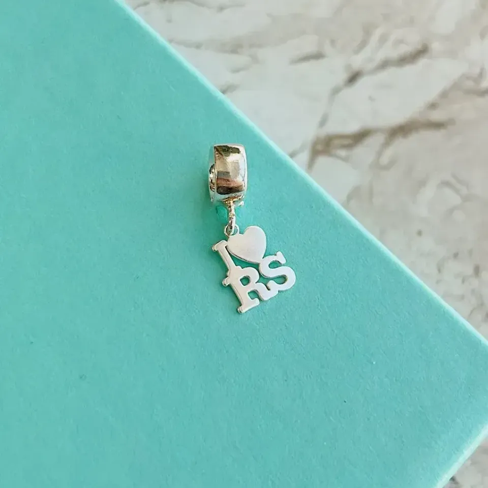 Berloque "i love rs" em prata 925.