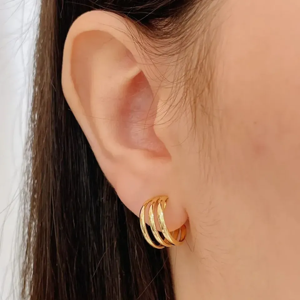 Brinco argola 3 fios finos 12mm. banhado a ouro 18k