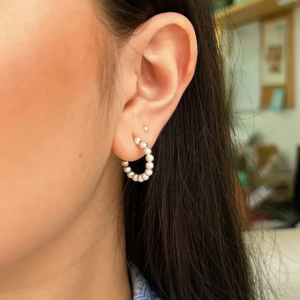 Brinco argola bolinhas. em prata 925.
