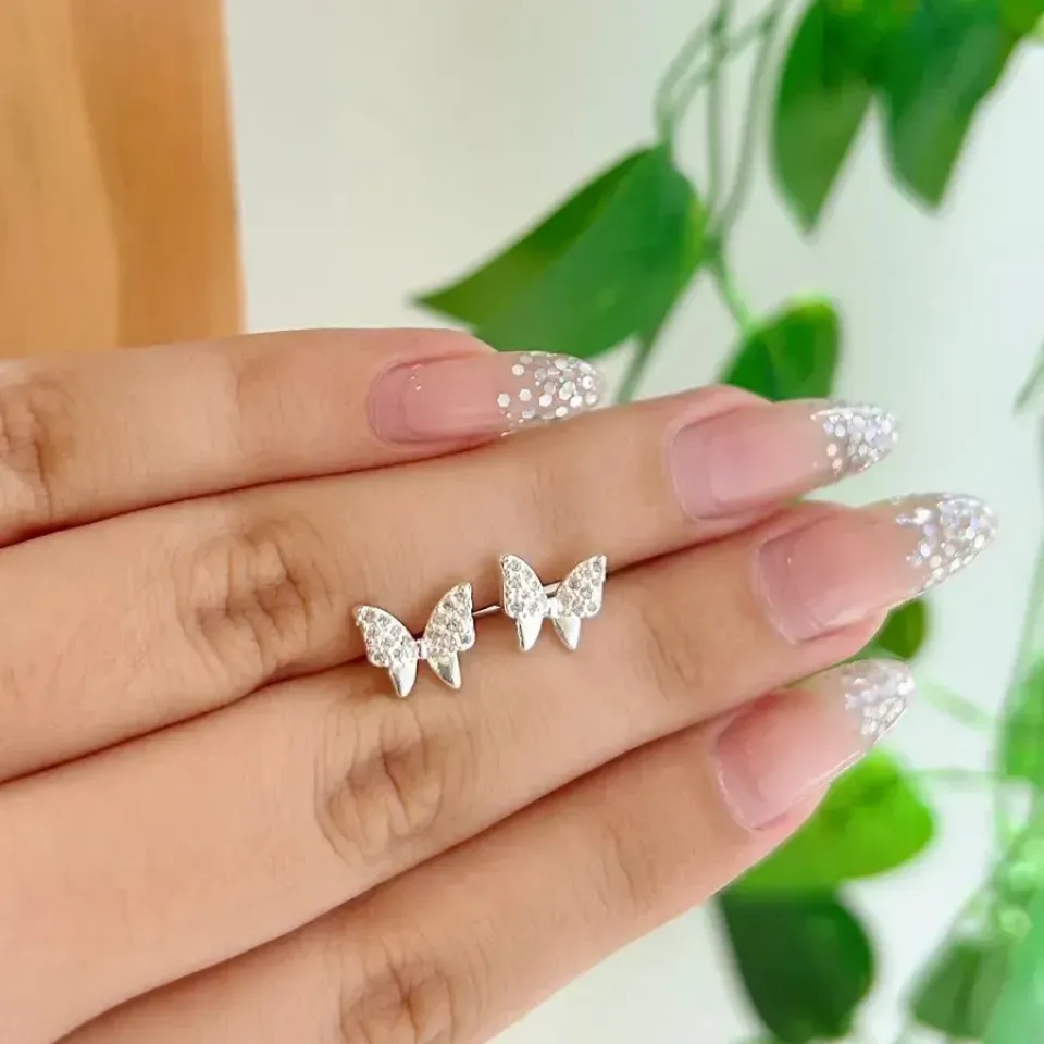 Brinco borboleta parcialmente cravejada em prata 925.