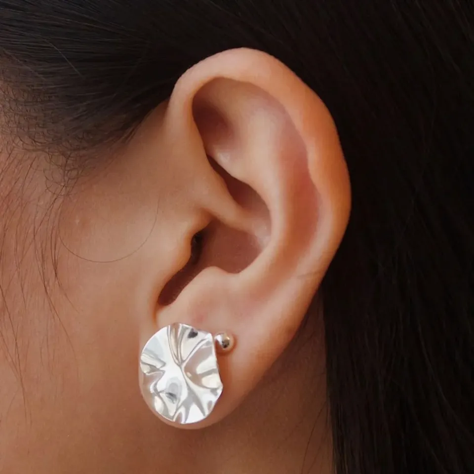Brinco círculo martelado 15mm. banhado a prata.