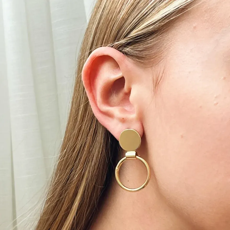 Brinco círculos. banhado a ouro 18k.