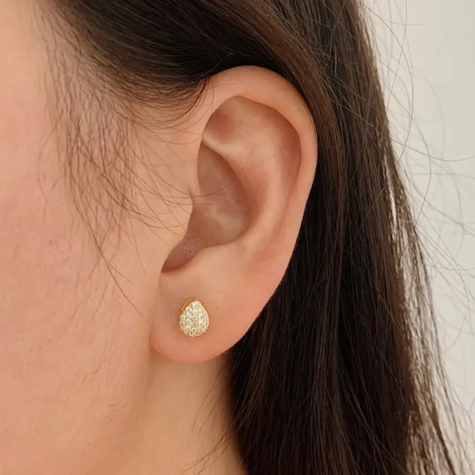 Brinco gota cravejada. banhado a ouro 18k.