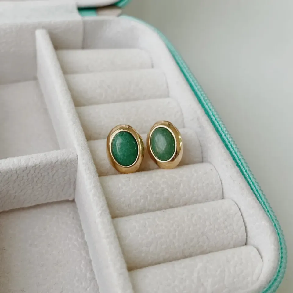 Brinco pedra jade. banhado a ouro 18k.