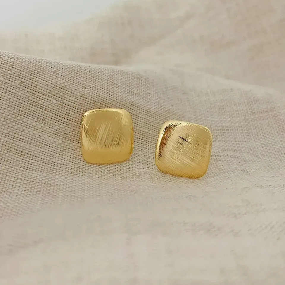 Brinco quadrado texturizado. banhado a ouro 18k.