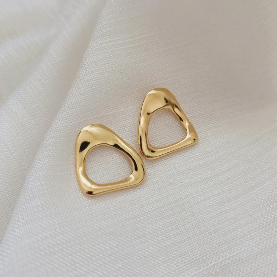 Brinco triângulo orgânico banhado a ouro 18k.