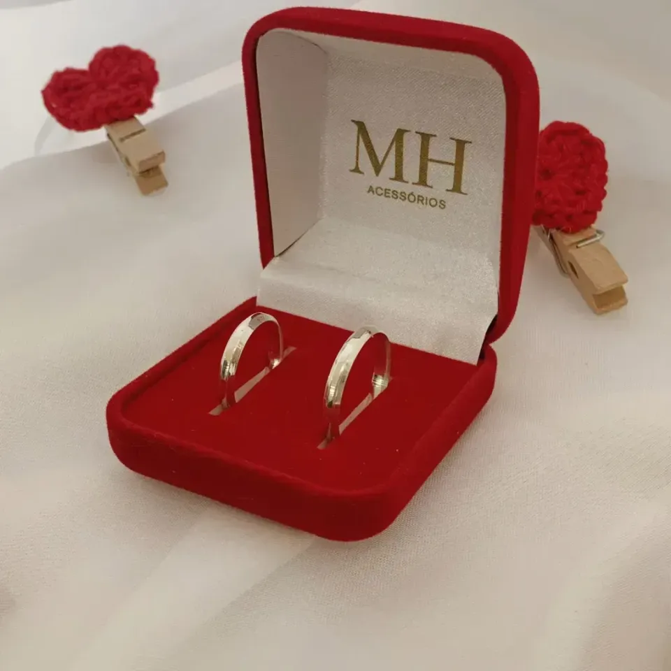 Caixinha de veludo vermelha para aliança.