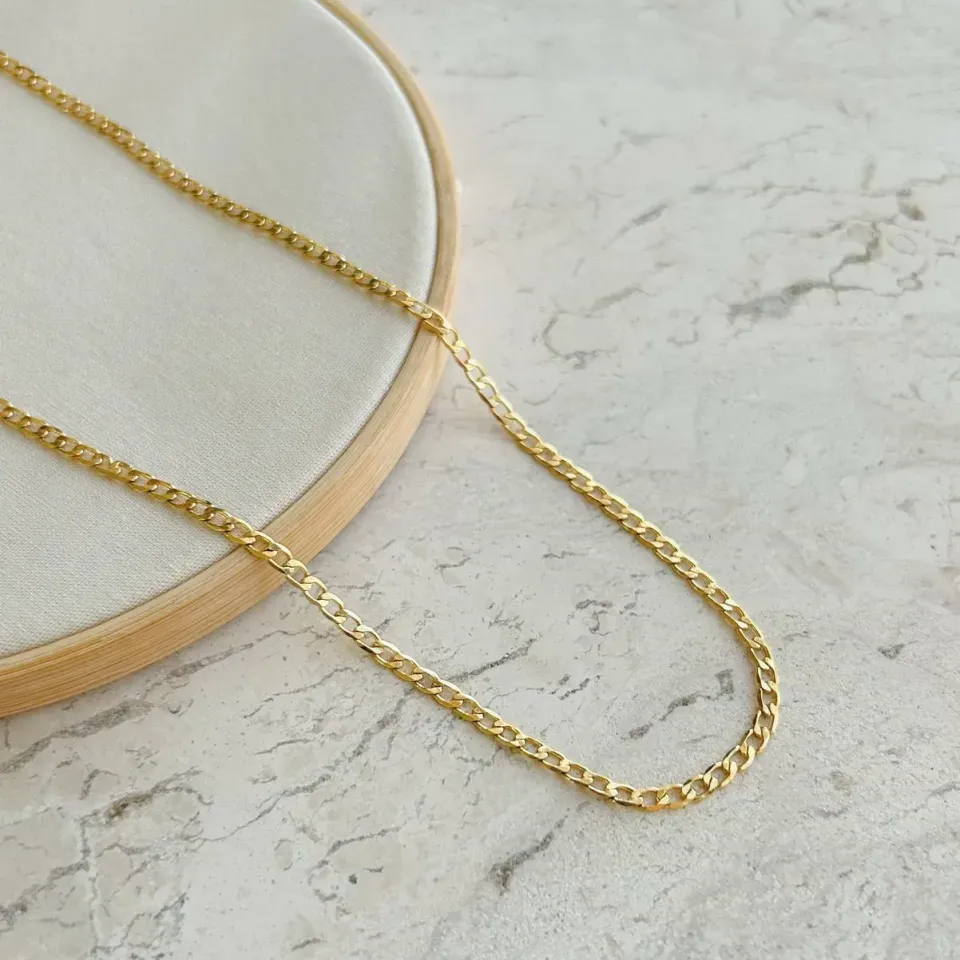 Colar grume fino. 70cm de comprimento. banhado a ouro 18k.
