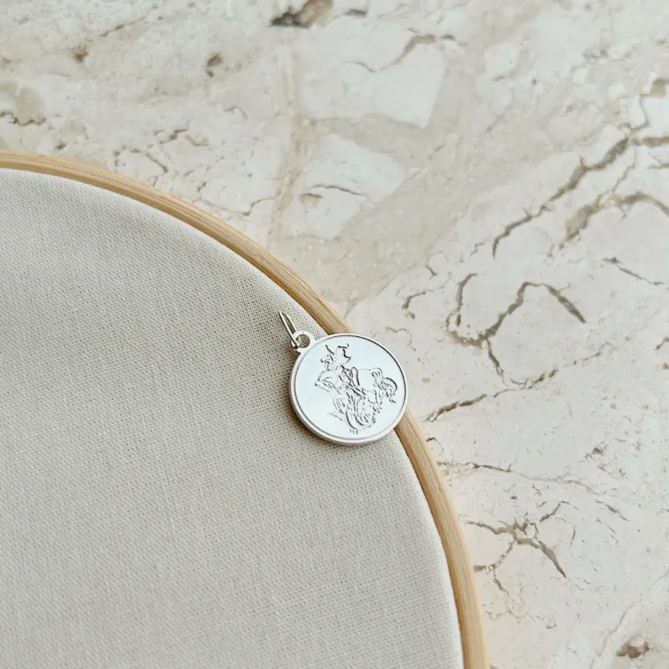 Pingente medalha são jorge em prata 925.
