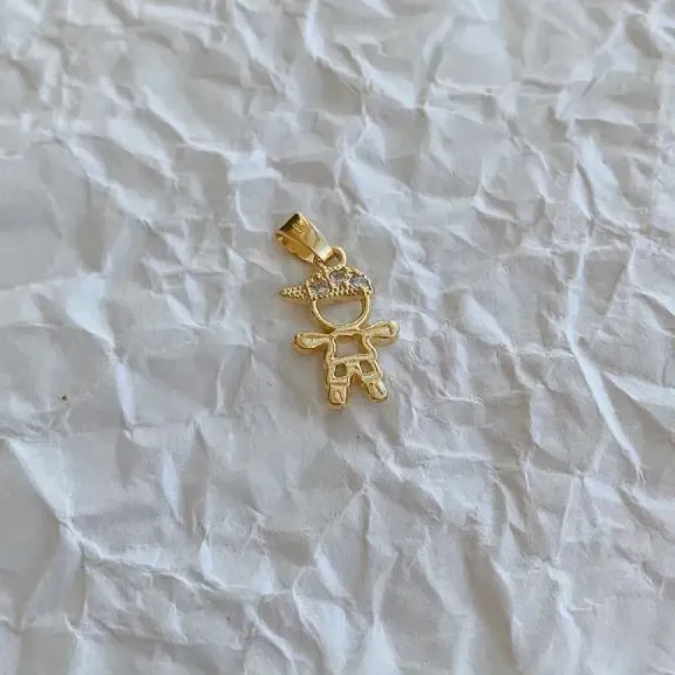Pingente menino com boné cravejado. banhado a ouro 18k.