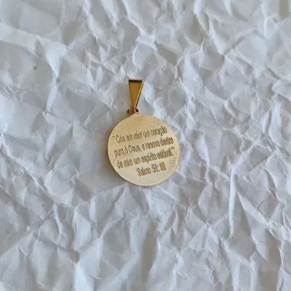 Pingente salmo 51:10. banhado a ouro 18k.